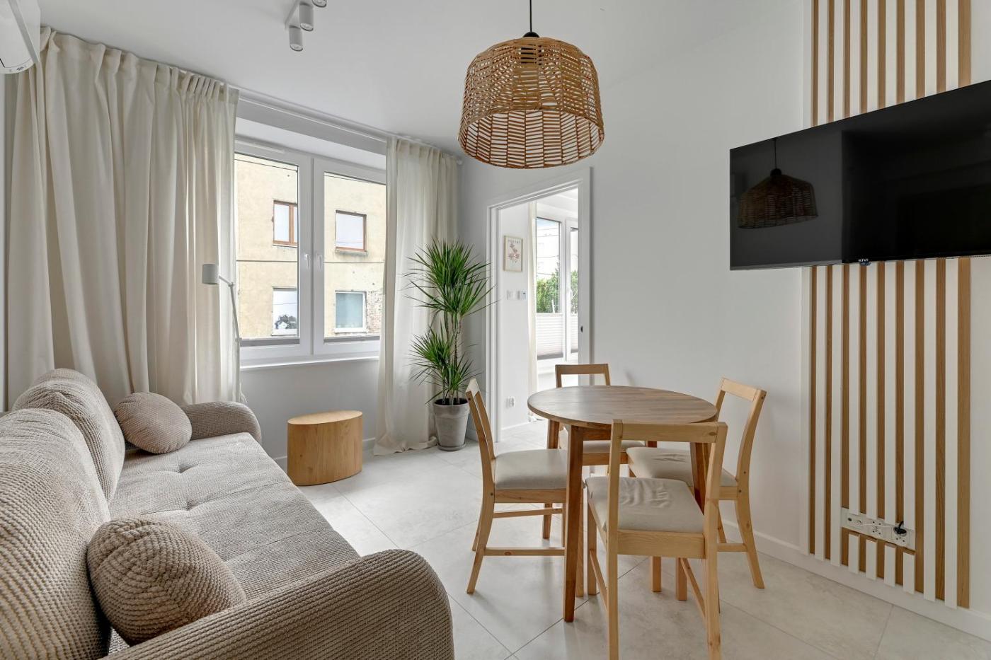 Apartament z 1 sypialnią. This air-conditioned apartment comes with 1 living room, 1 separate bedroom and 1 bathroom with a shower. Guests can make meals in the kitchenette that features a stovetop, a refrigerator, a dishwasher and kitchenware. Boasting a terrace with garden views, this apartment also features soundproof walls and a flat-screen TV with streaming services. The unit has 2 beds. Apartament - 5 osobowy. Powierzchnia pokoju ok.: 28 mkw.